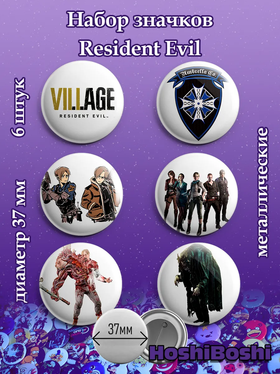 Набор из 6 металлических значков с изображениями из игры Резидент Эвиль ( Resident Evil ).