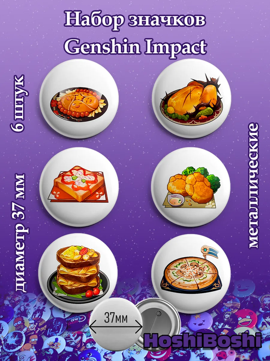 Набор из 6 металлических значков с изображениями из игры Геншин Импакт ( Genshin Impact ).