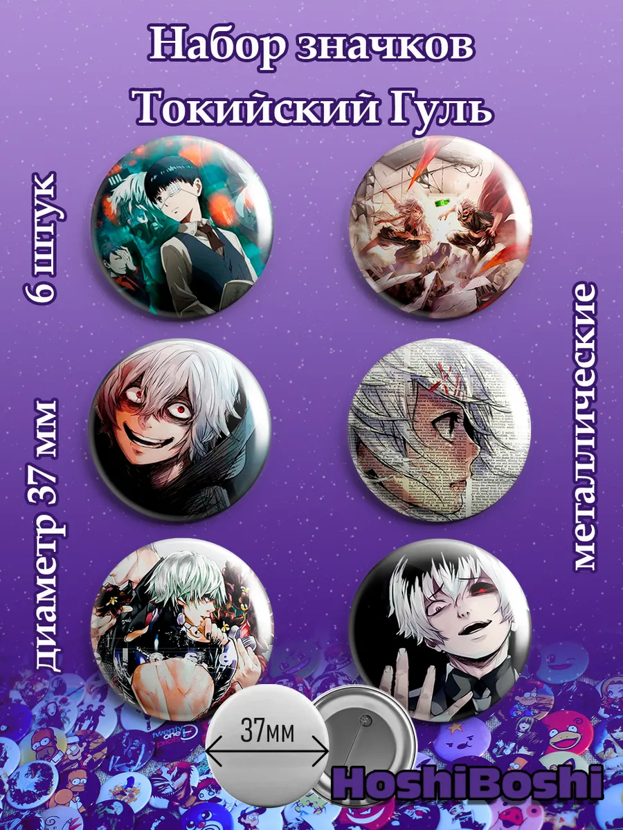Набор из 6 металлических значков с изображениями из аниме Токийский гуль ( Tokyo Ghoul ).