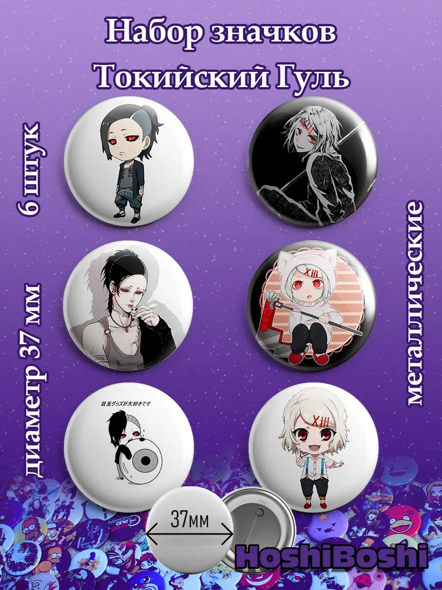 Набор из 6 металлических значков с изображениями из аниме Токийский гуль ( Tokyo Ghoul ).