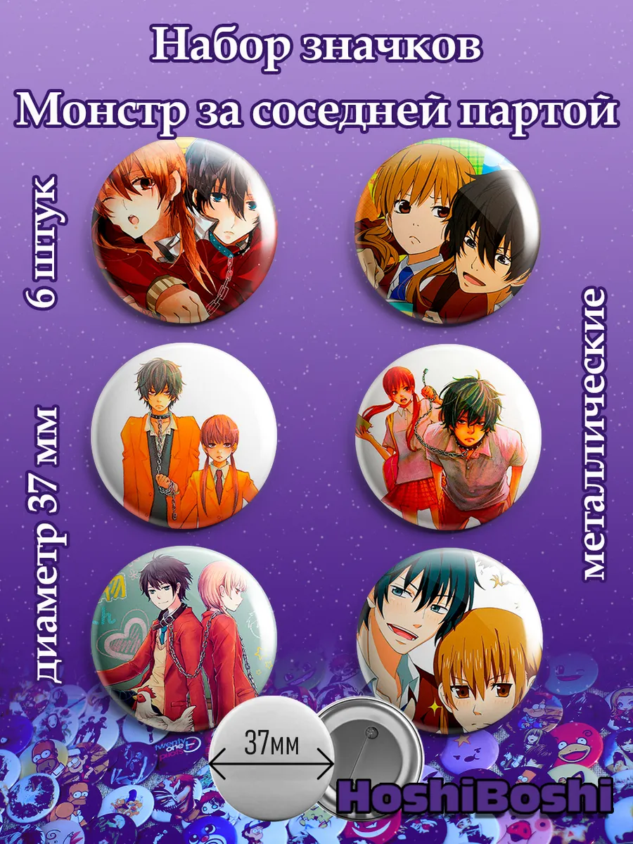 Набор из 6 металлических значков с изображениями из аниме Монстр за соседней партой ( Tonari no Kaibutsu-kun ).