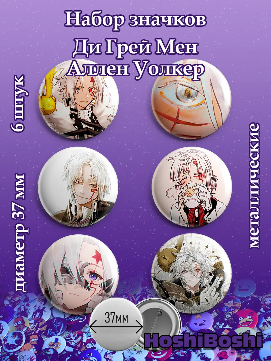 Набор из 6 металлических значков с изображениями из аниме Ди Грей Мен ( D.Gray-man ).