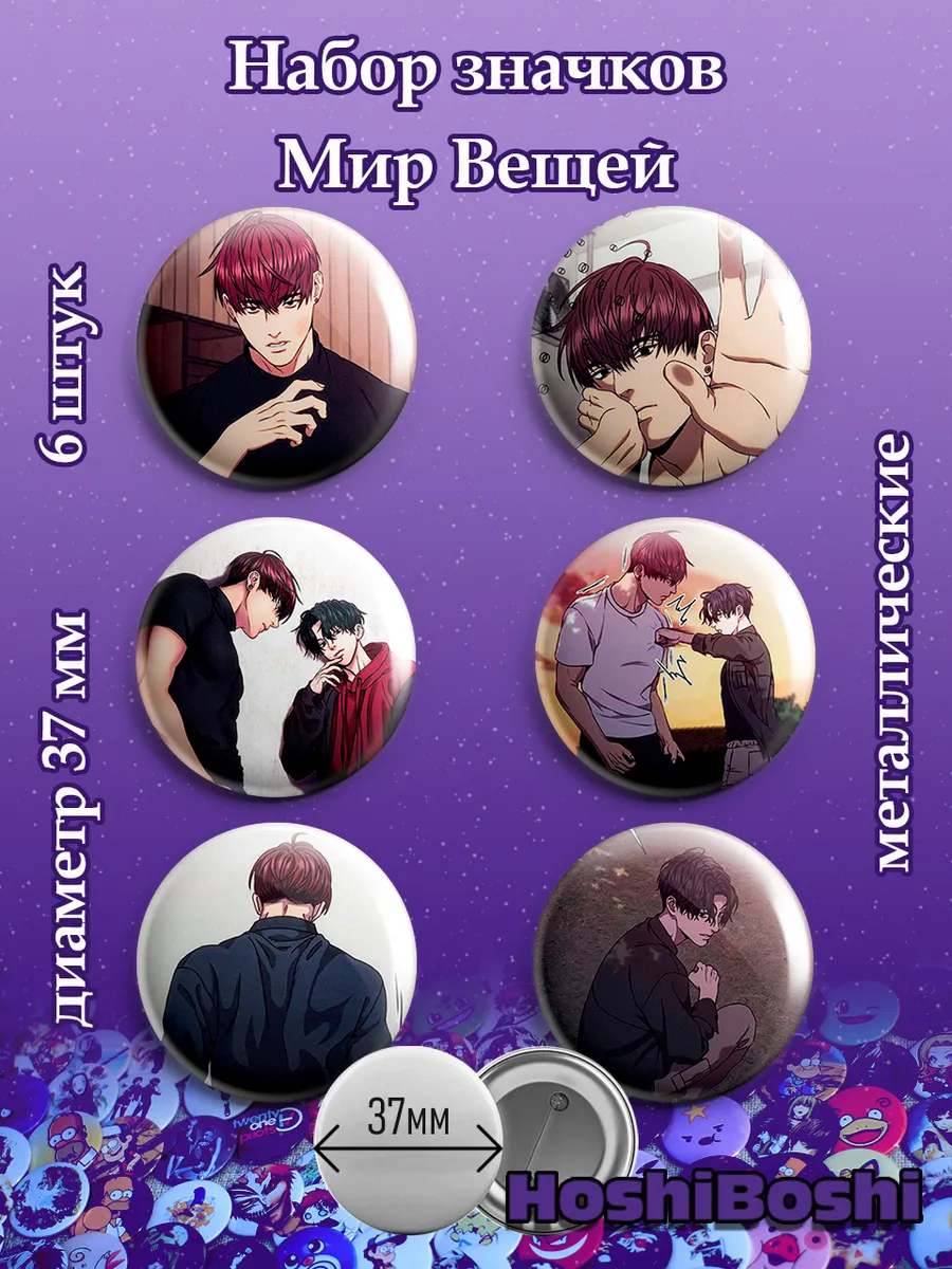 Набор из 6 металлических значков с изображениями из манхвы Мир вещей ( World of Objects ).