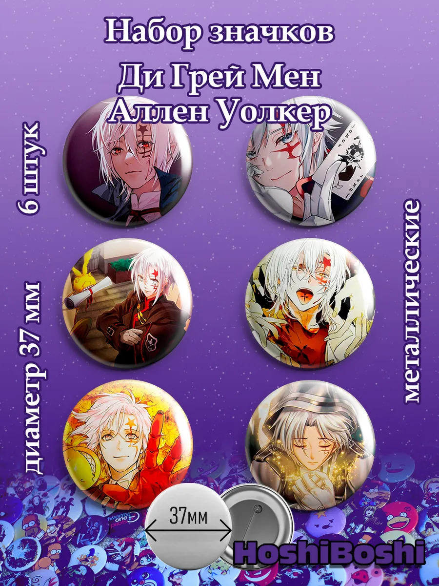 Набор из 6 металлических значков с изображениями из аниме Ди Грей Мен ( D.Gray-man ).
