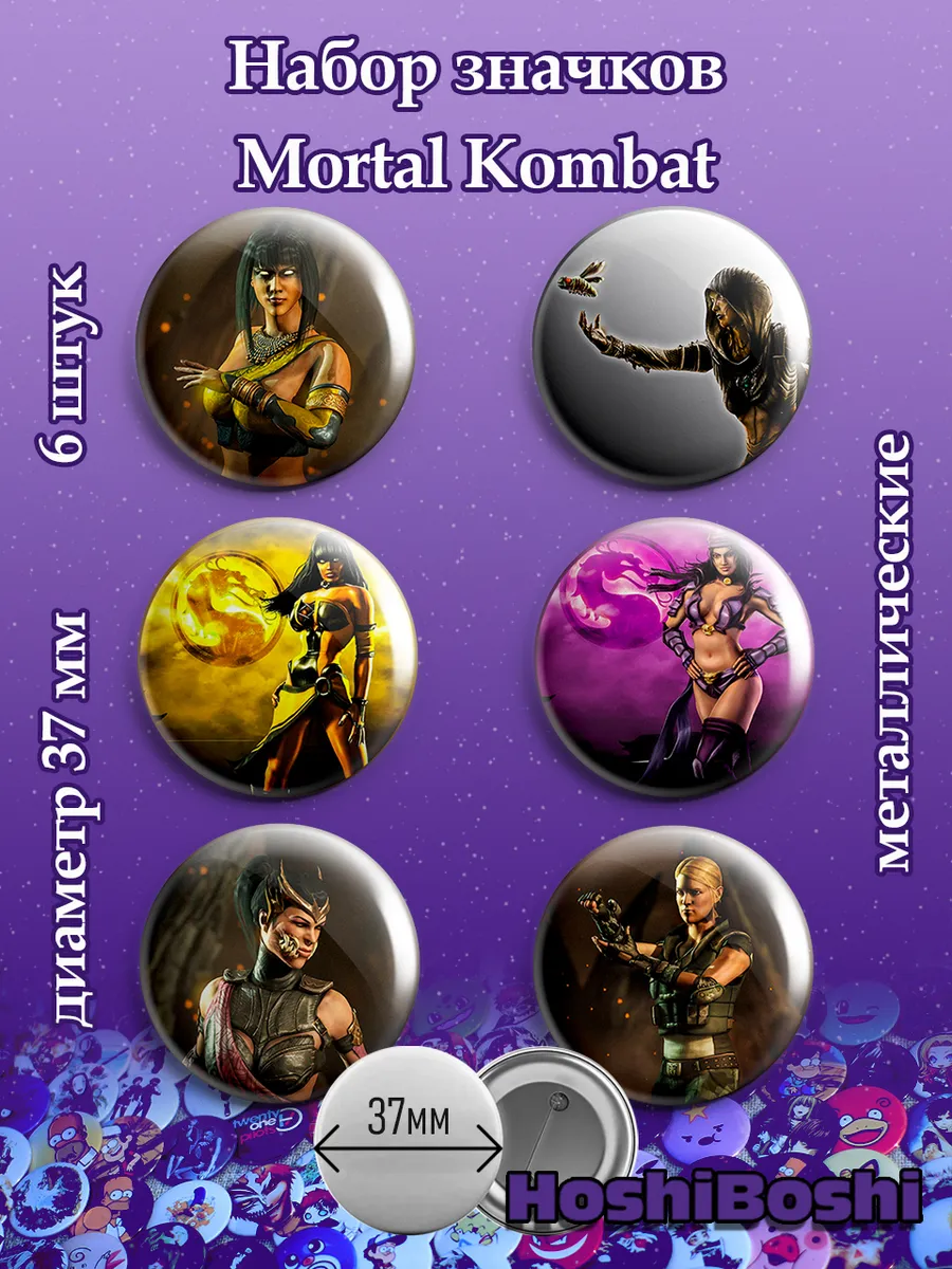 Набор из 6 металлических значков с изображениями из игры Мортал Комбат ( Mortal Kombat ).