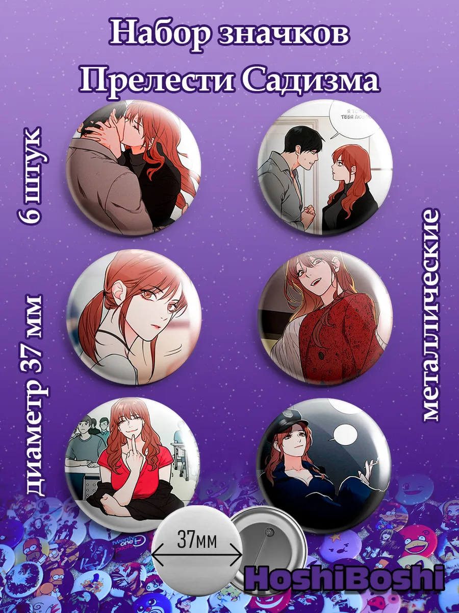 Набор из 6 металлических значков с изображениями из манхвы Прелести садизма ( Sadistic Beauty ).