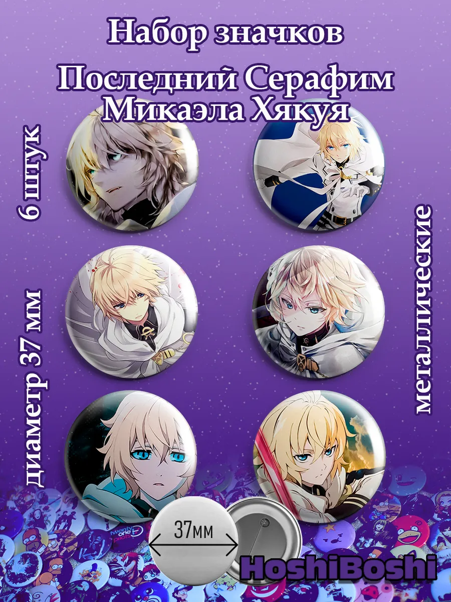 Набор из 6 металлических значков с изображениями из аниме Последний Серафим ( Owari no Seraph Seraph of the End ).
