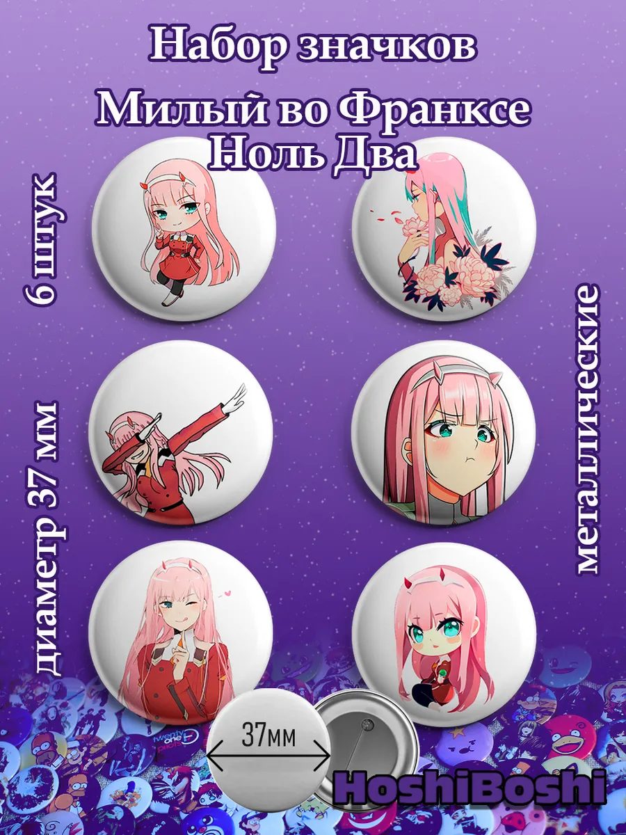 Набор из 6 металлических значков с изображениями из аниме Милый во Франксе ( Darling in the Franxx ).
