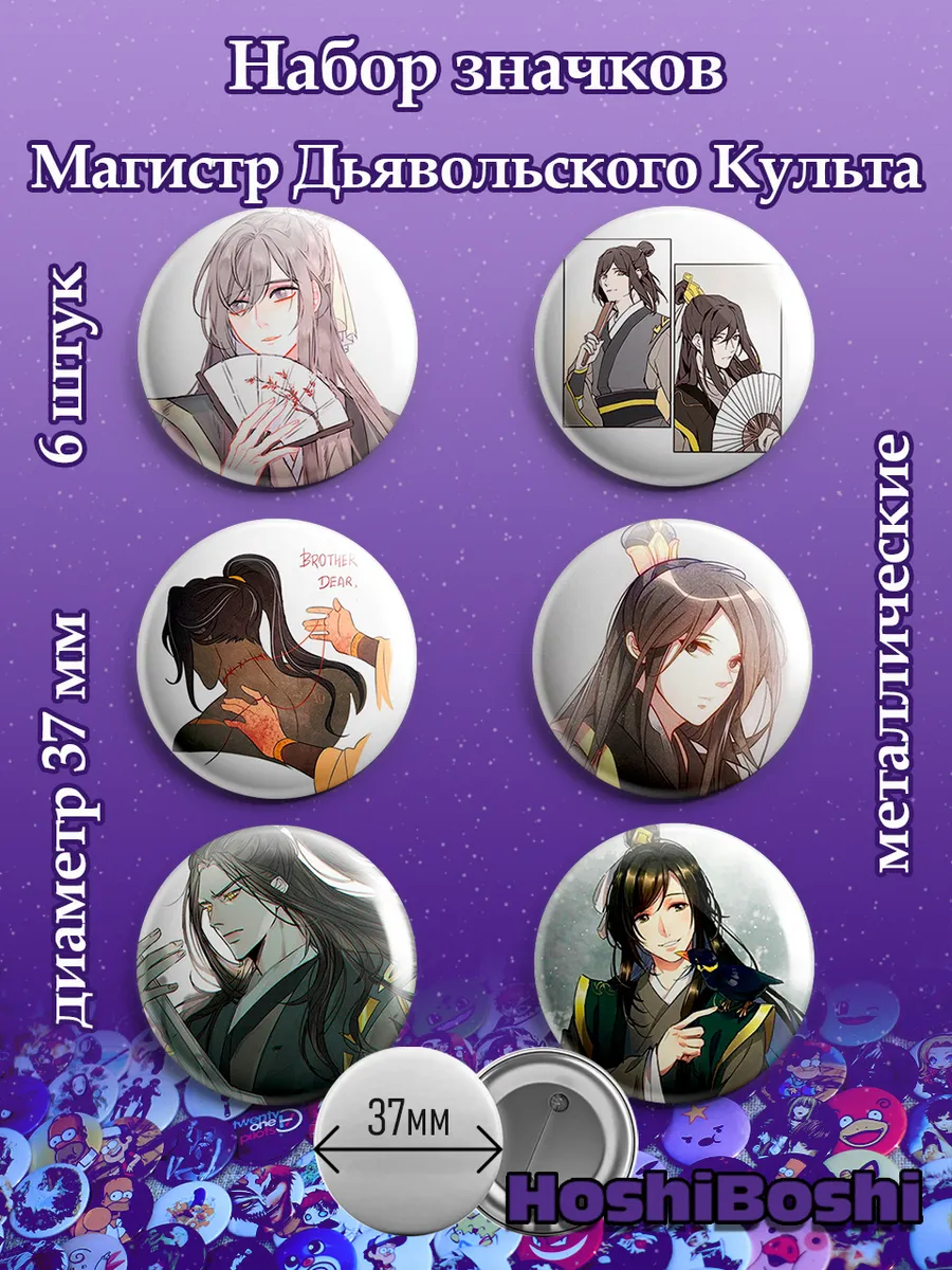 Набор из 6 металлических значков с изображениями из аниме Магистр Дьявольского Культа ( Mo Dao Zu Shi ).