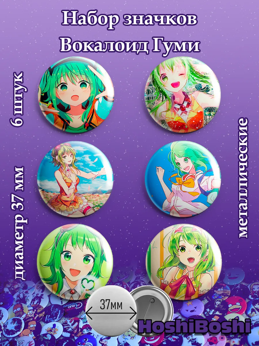 Набор из 6 металлических значков с изображениями Вокалоидов ( Vocaloid ).