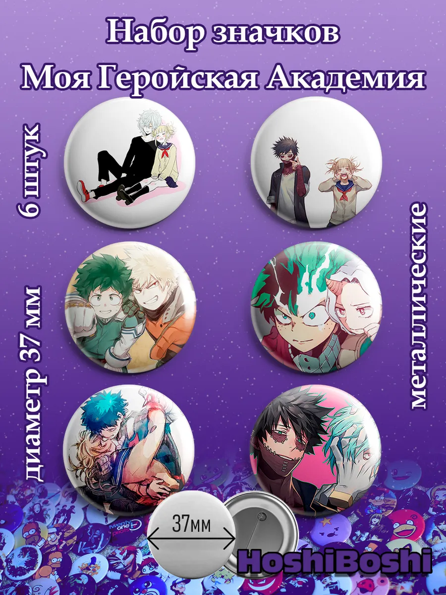 Набор из 6 металлических значков с изображениями из аниме Моя геройская академия ( Boku no Hero Academia ).