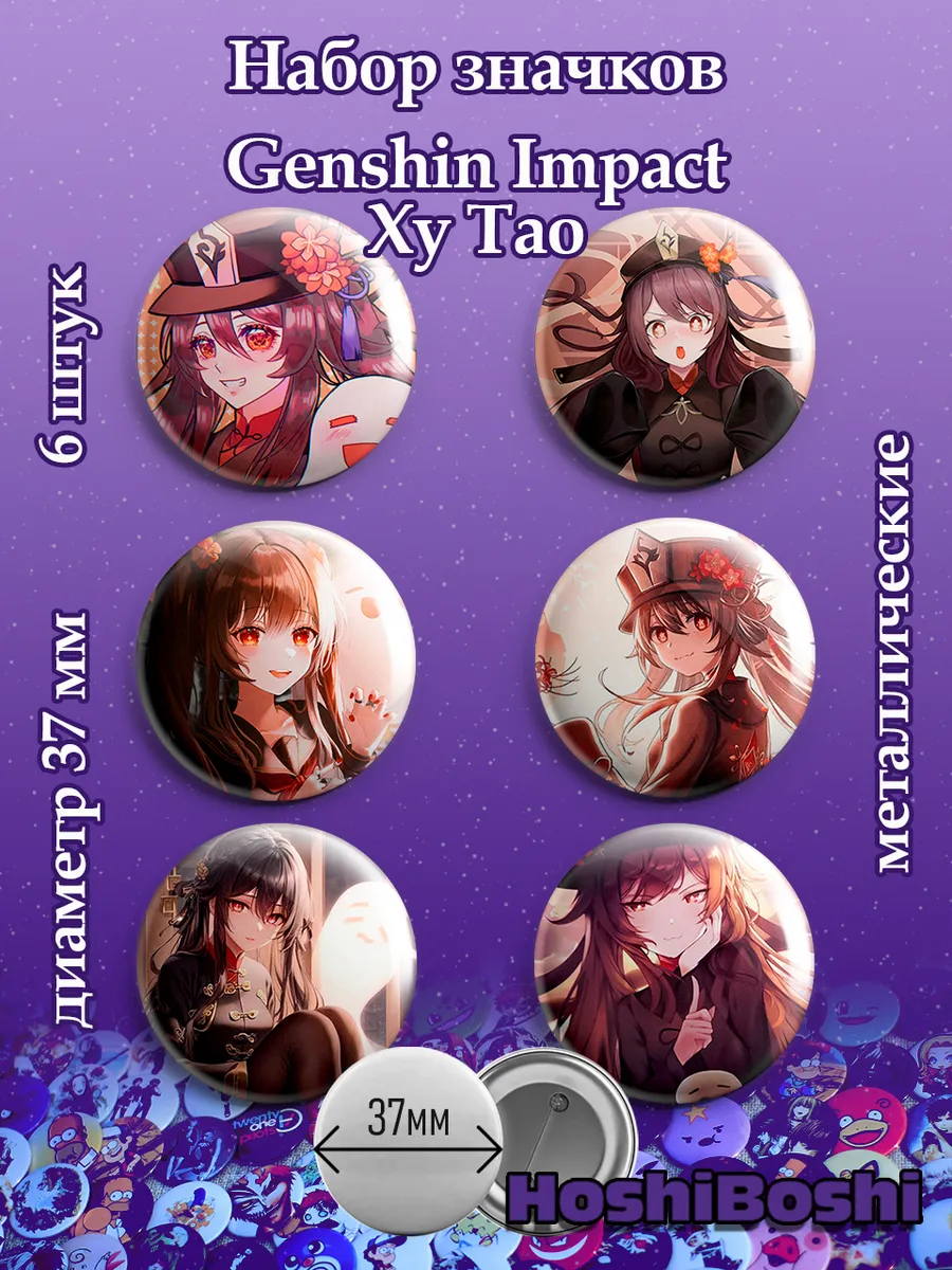 Набор из 6 металлических значков с изображениями из игры Геншин Импакт ( Genshin Impact ).
