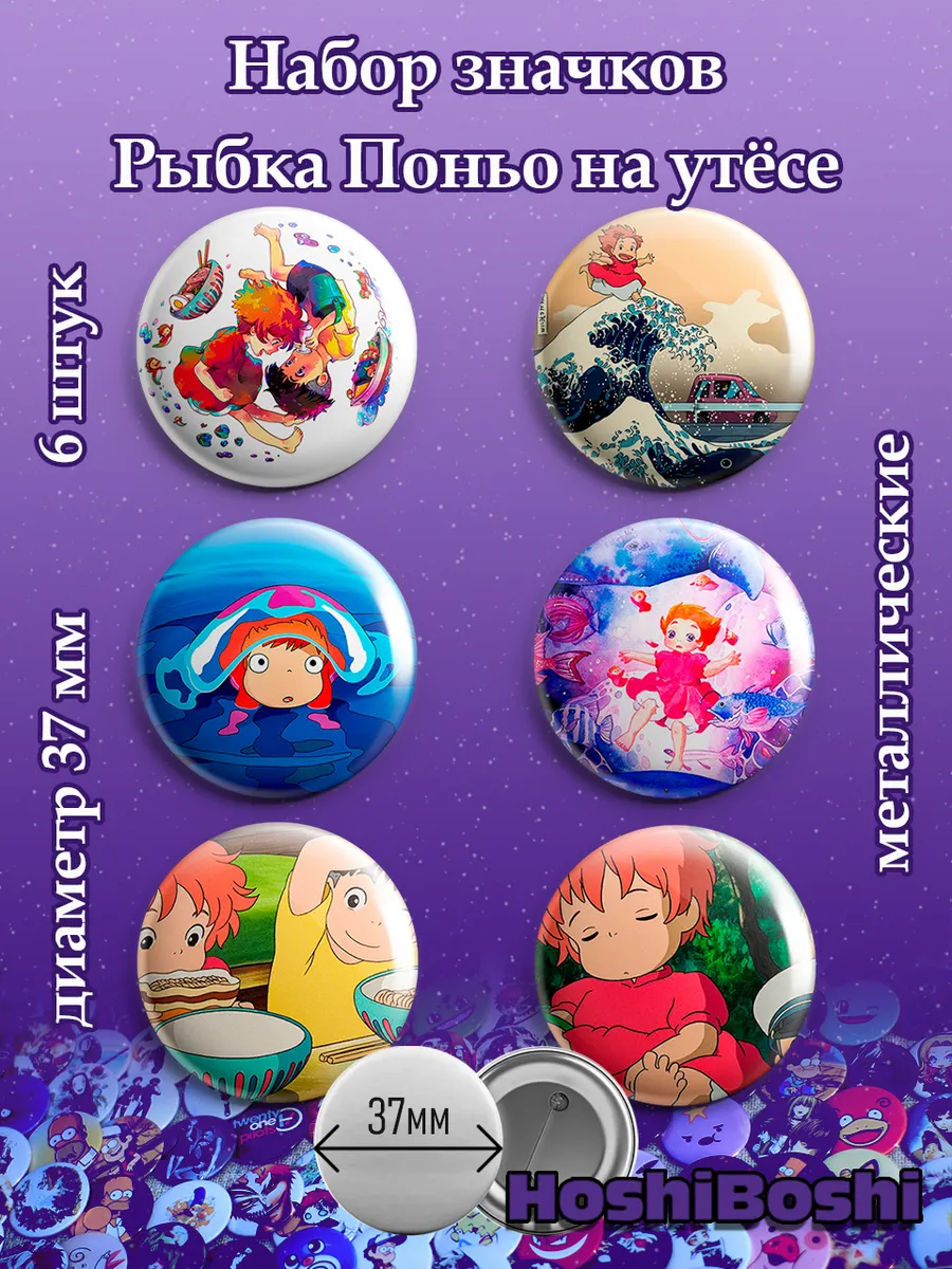 Набор из 6 металлических значков с изображениями вселенная Хаяо Миядзаки ( Hayao Miyazaki ).