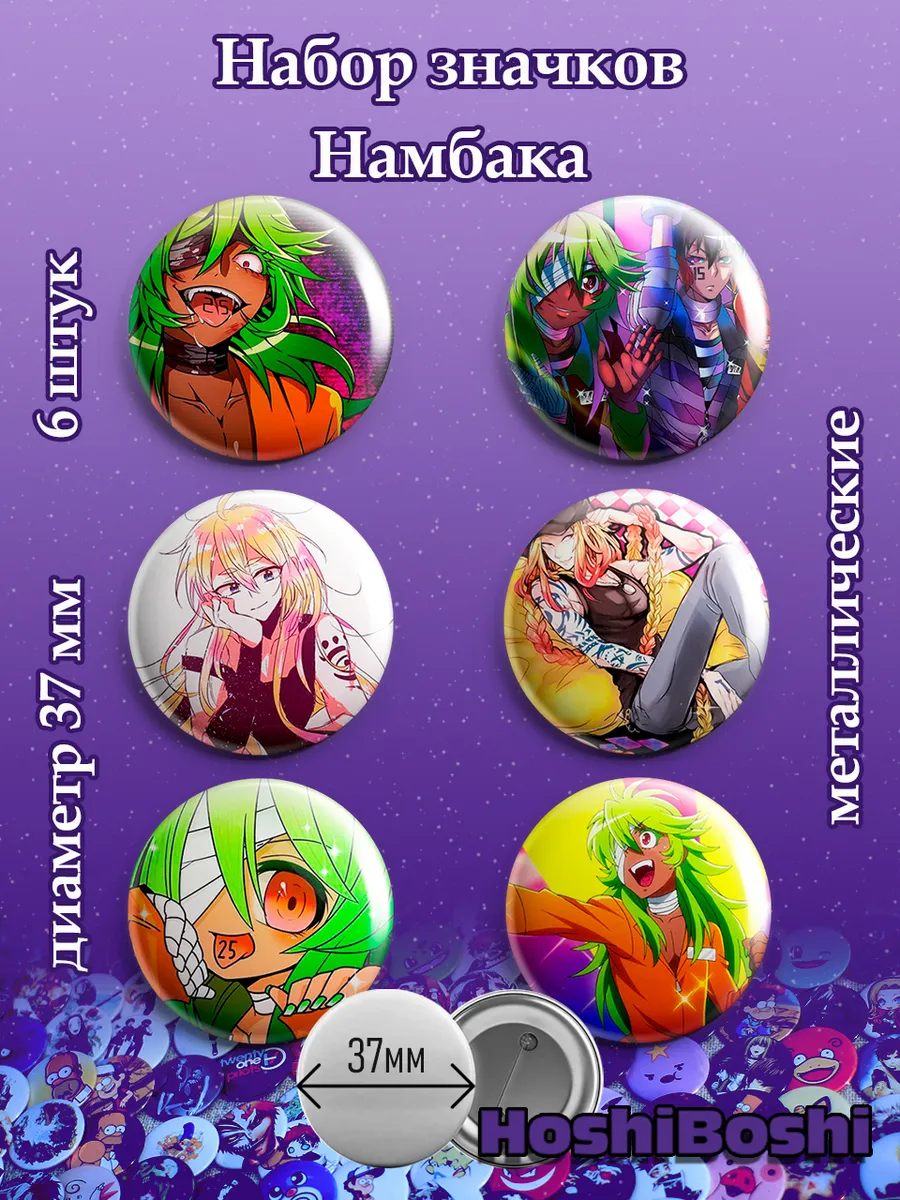 Набор из 6 металлических значков с изображениями из аниме Намбака ( Nanbaka ).