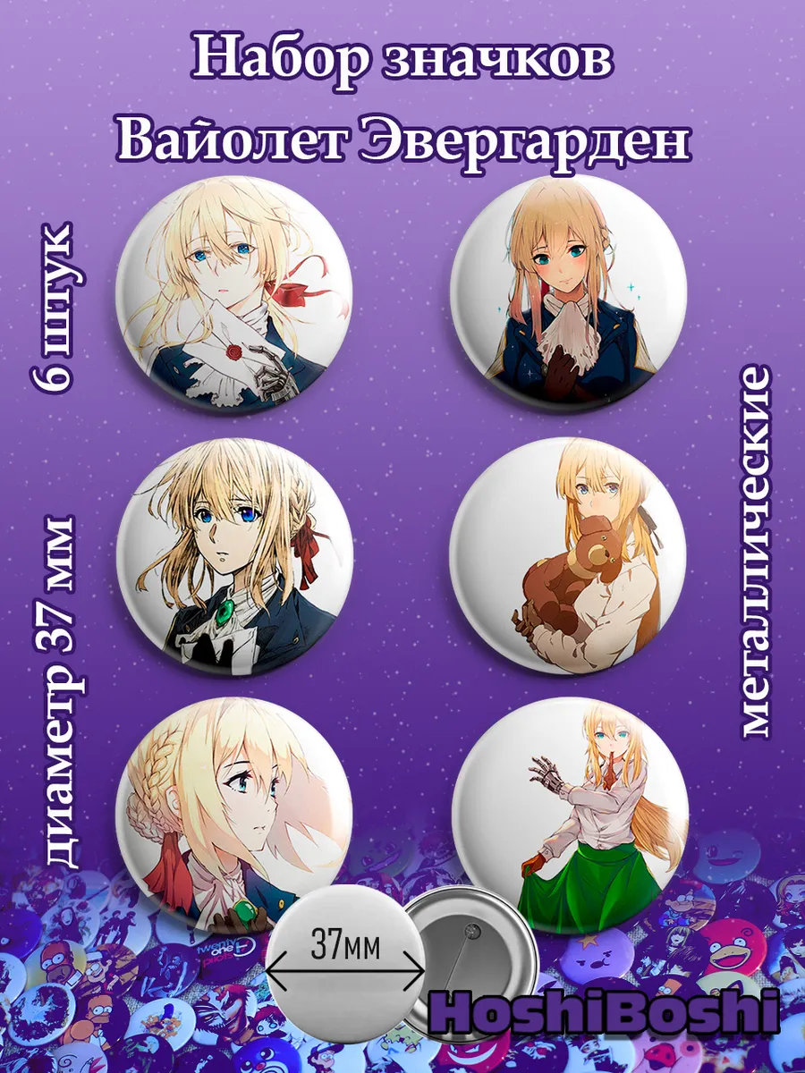 Набор из 6 металлических значков с изображениями из аниме Вайолет Эвергарден ( Violet Evergarden ).