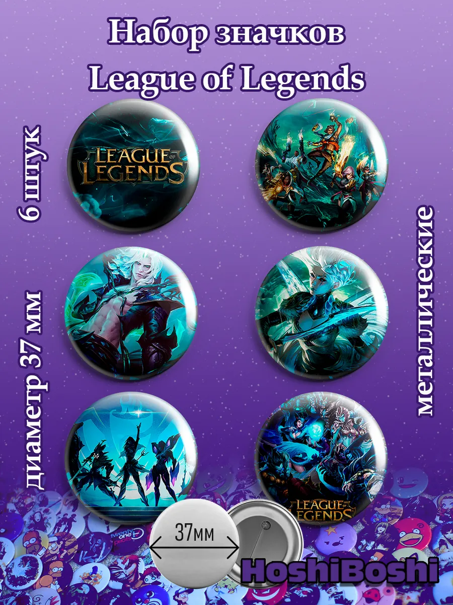 Набор из 6 металлических значков с изображениями из игры Лига Легенд ( League of Legends ).