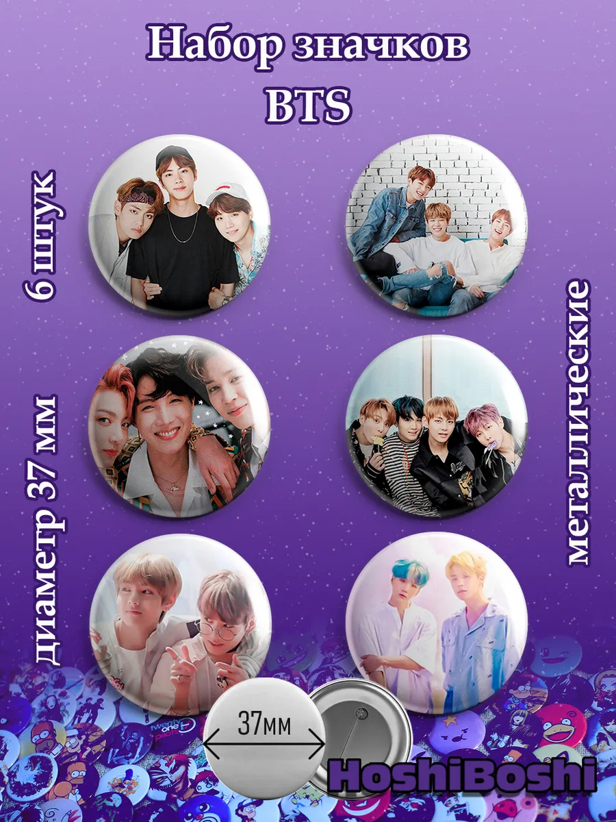 Набор из 6 металлических значков с изображениями с Кей-Поп группой БТС ( BTS ).