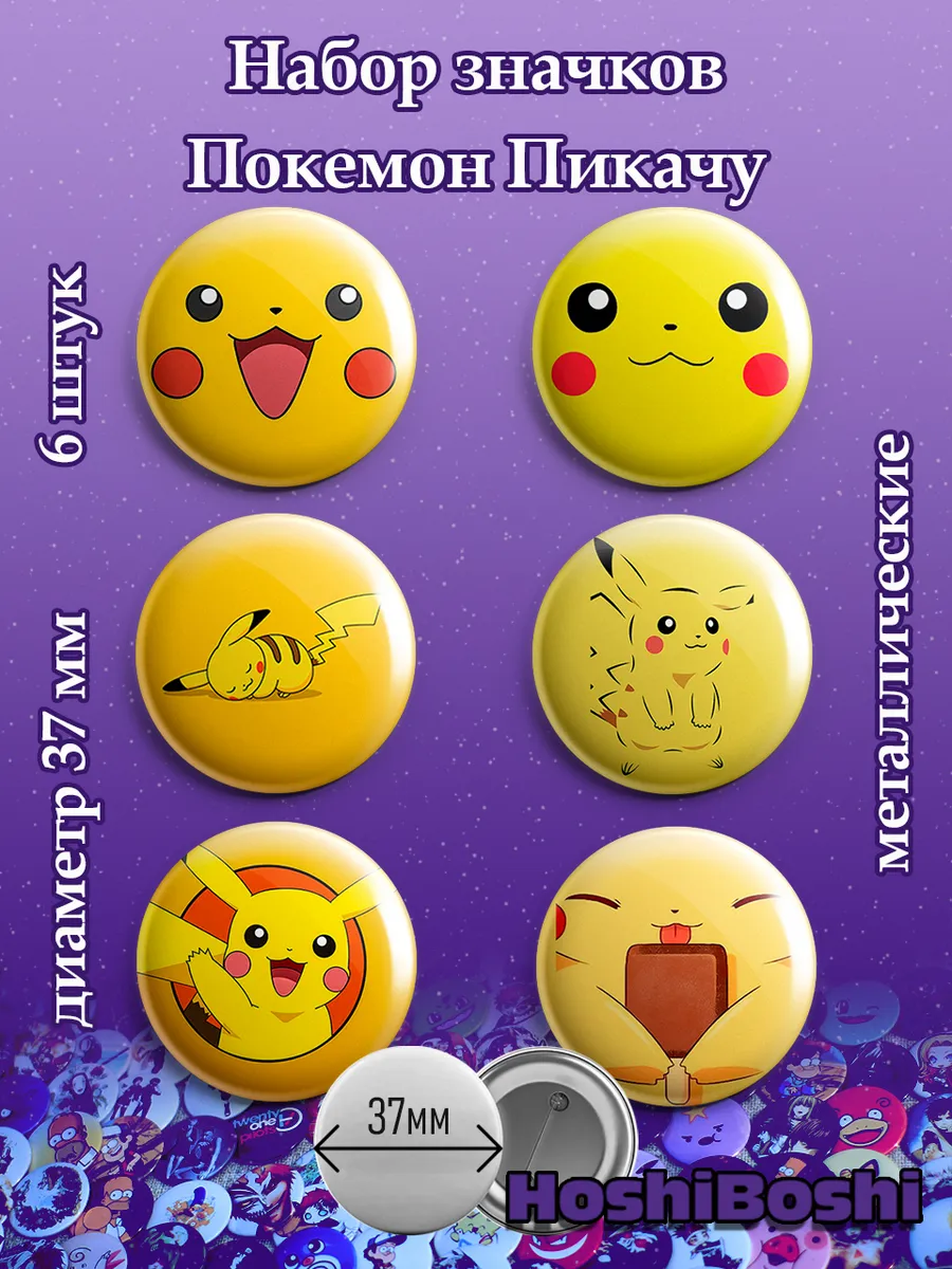 Набор из 6 металлических значков с изображениями из аниме Покемон ( Pokémon ).