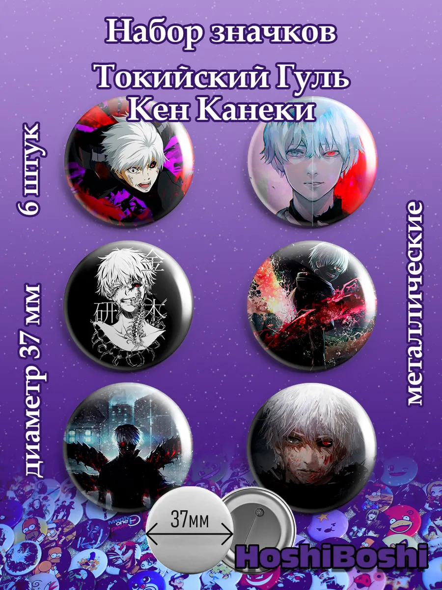 Набор из 6 металлических значков с изображениями из аниме Токийский гуль ( Tokyo Ghoul ).