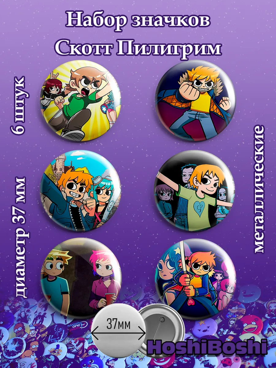 Набор из 6 металлических значков с изображениями из комикса Скотт Пилигрим ( Scott Pilgrim ).