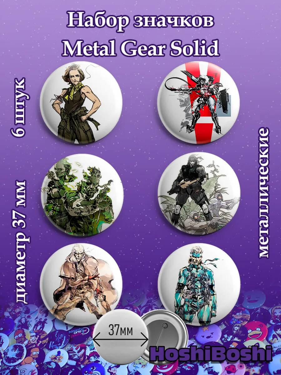 Набор из 6 металлических значков с изображениями из игры Метал Гир ( Metal Gear ).