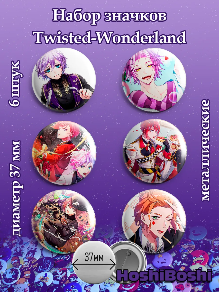 Набор из 6 металлических значков с изображениями из игры Твистед Вондерленд ( Twisted-Wonderland ).