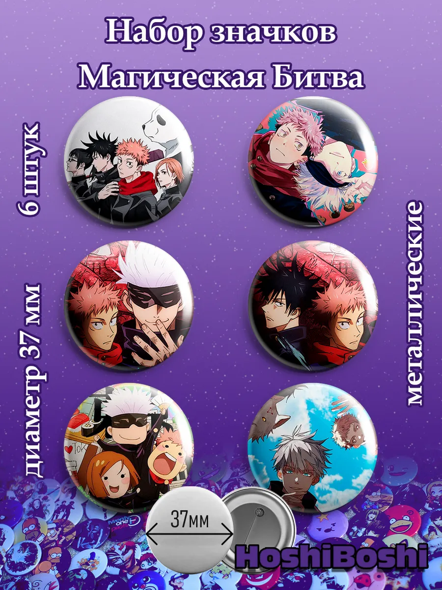 Набор из 6 металлических значков с изображениями из аниме Магическая Битва ( Jujutsu Kaisen ).