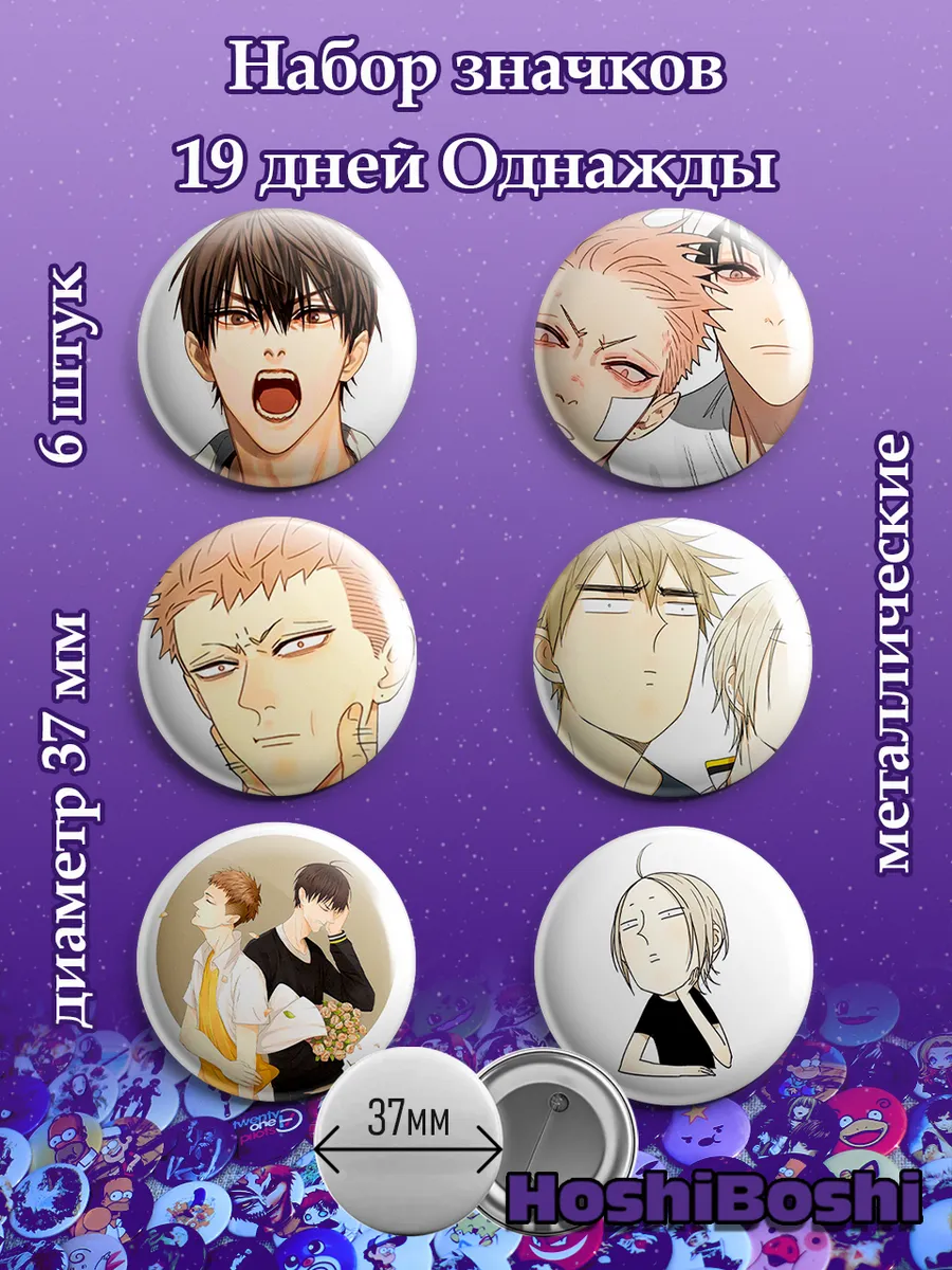 Набор из 6 металлических значков с изображениями из манхвы 19 дней Однажды ( 19 Days — One Day ).
