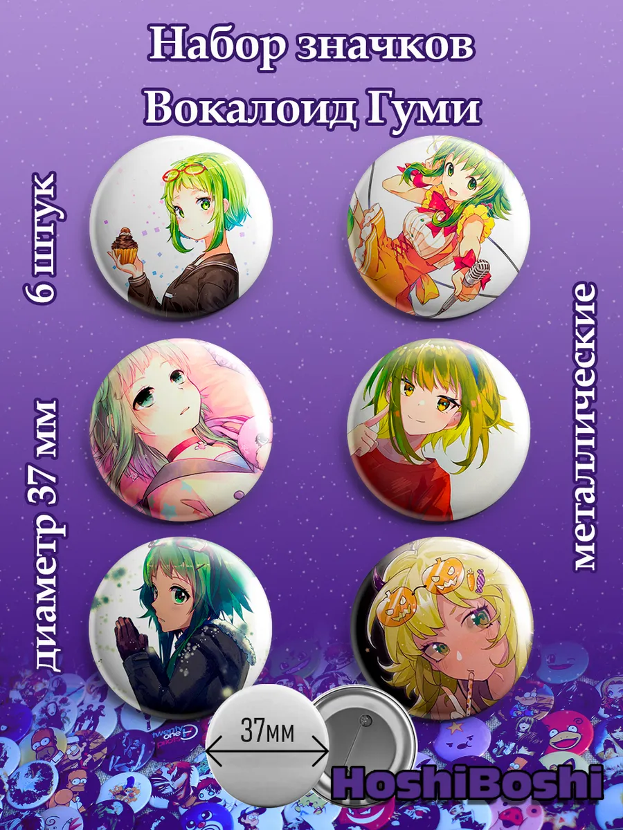 Набор из 6 металлических значков с изображениями Вокалоидов ( Vocaloid ).