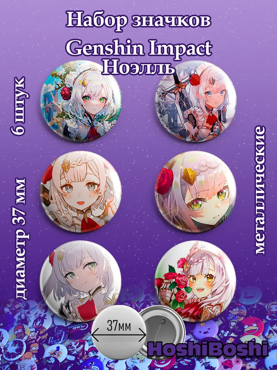 Набор из 6 металлических значков с изображениями из игры Геншин Импакт ( Genshin Impact ).