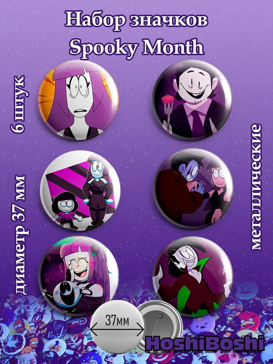 Набор из 6 металлических значков с изображениями с игрой Жуткий месяц ( Spooky Month ).