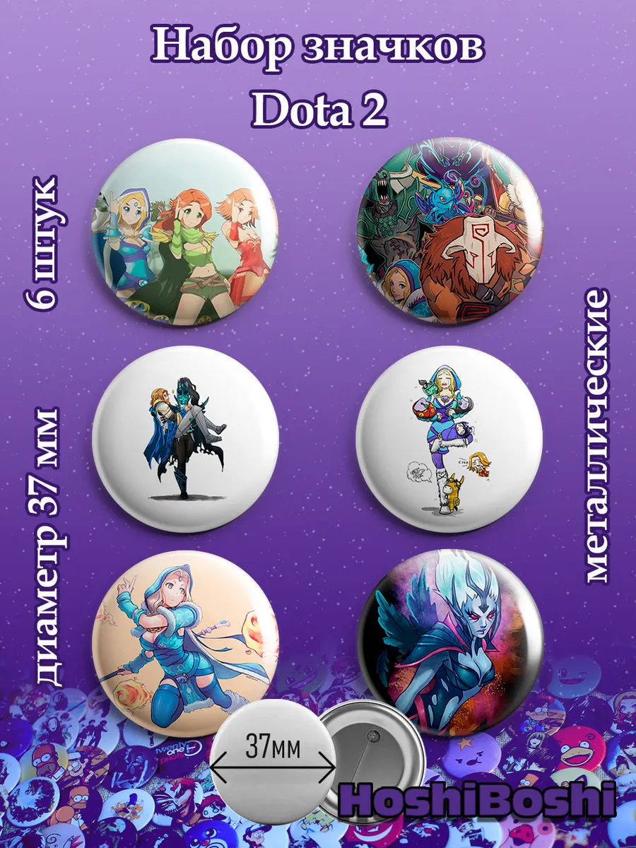 Набор из 6 металлических значков с изображениями из игры Дота 2 ( Dota 2 ).