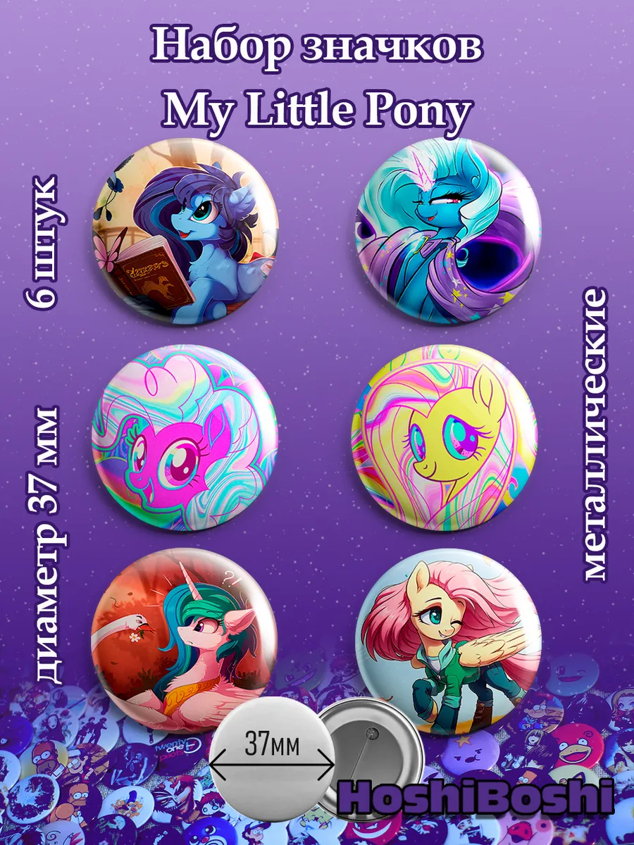 Набор из 6 металлических значков с изображениями из мультсериала Дружба это чудо ( My Little Pony ).