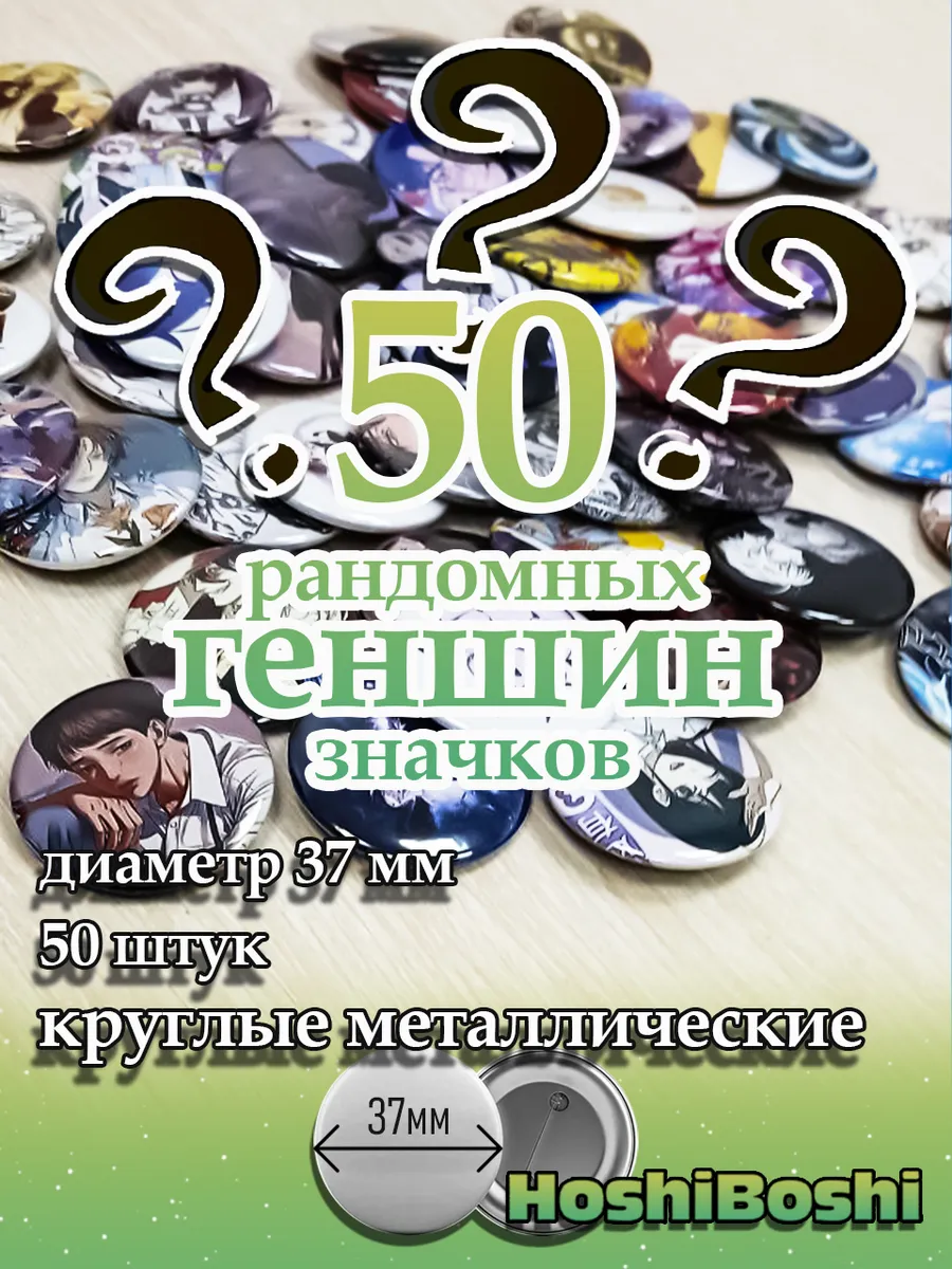 Набор из 50 металлических значков с рандомными изображениями из игры Геншин Импакт Genshin Impact.