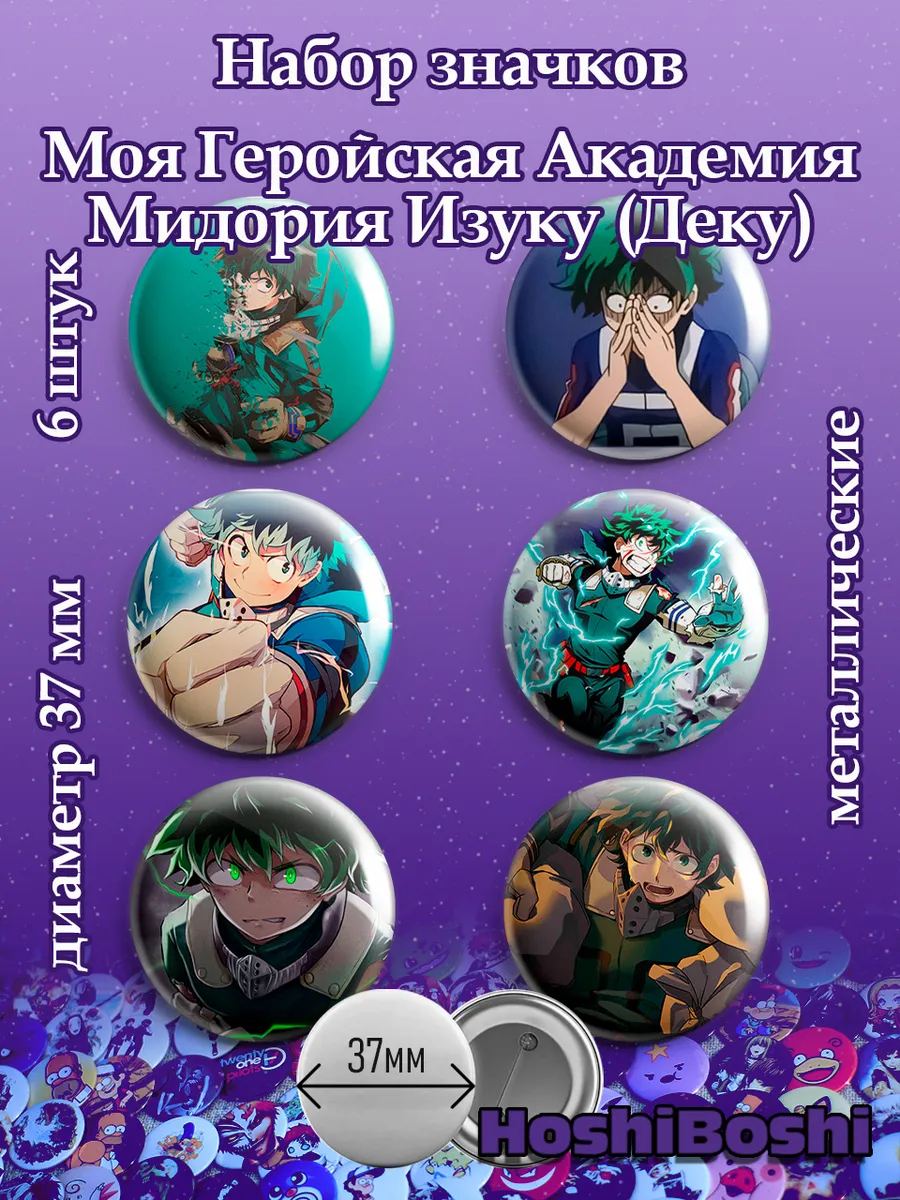 Набор из 6 металлических значков с изображениями из аниме Моя геройская академия ( Boku no Hero Academia ).