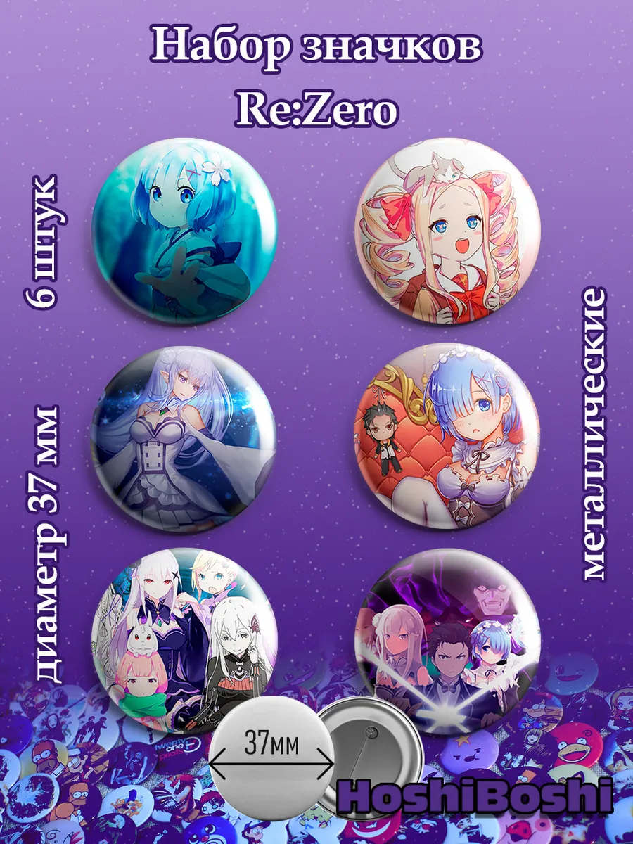 Набор из 6 металлических значков с изображениями из аниме Жизнь в альтернативном мире с нуля Резеро ( Re: Zero ).