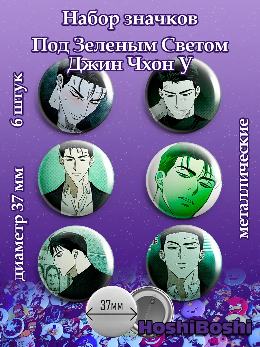 Набор из 6 металлических значков с изображениями из манхвы Под зеленым светом ( Under the Greenlight ).