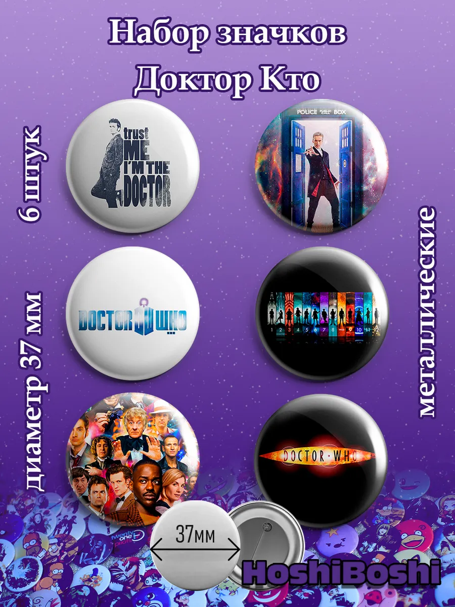 Набор из 6 металлических значков с изображениями из сериала Доктор Кто ( Doctor Who ).
