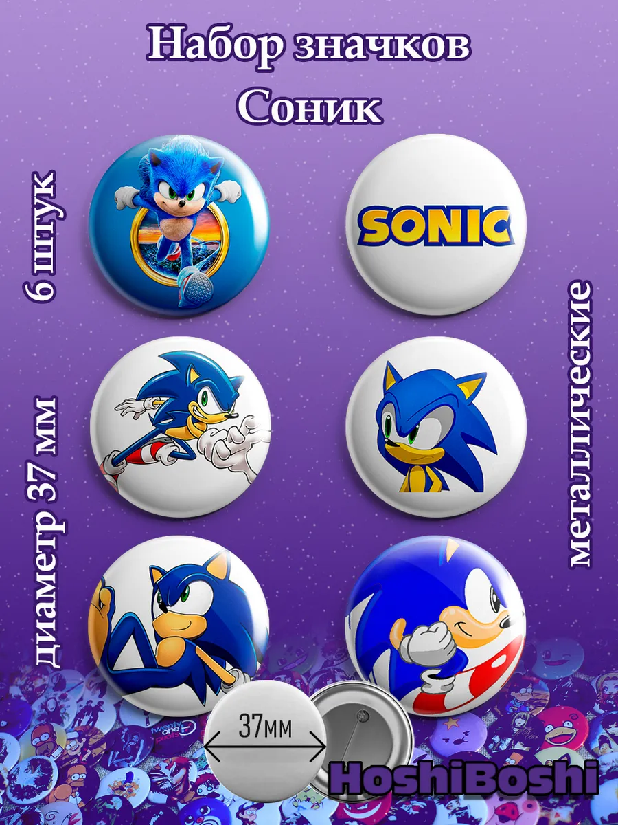 Набор из 6 металлических значков с изображениями с персонажем Соник ( Sonic ).