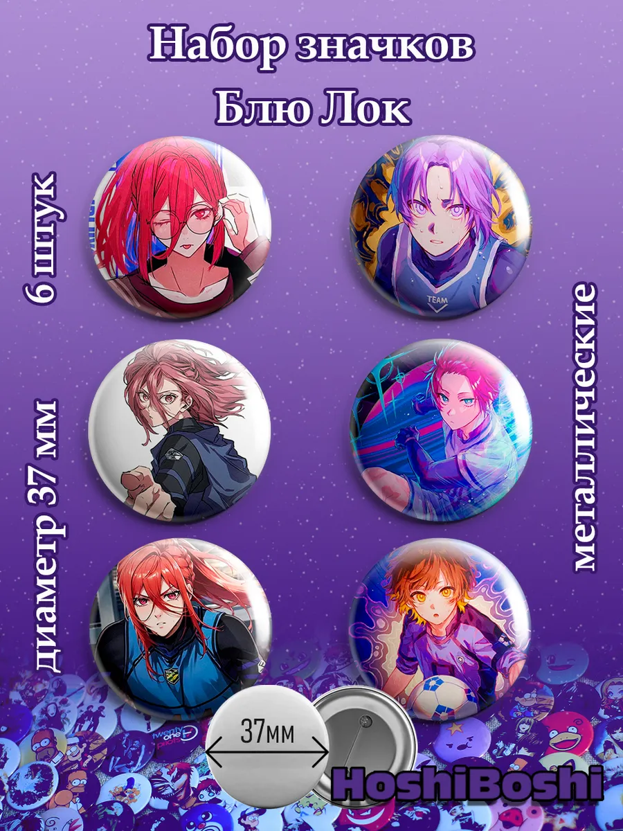 Набор из 6 металлических значков с изображениями из аниме Блю Лок ( Blue Lock ).
