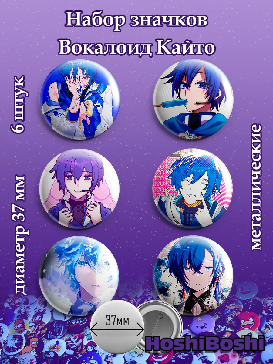 Набор из 6 металлических значков с изображениями Вокалоидов ( Vocaloid ).