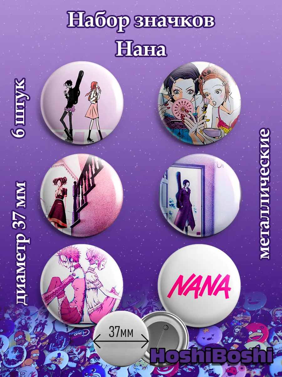 Набор из 6 металлических значков с изображениями из аниме Нана ( Nana ).