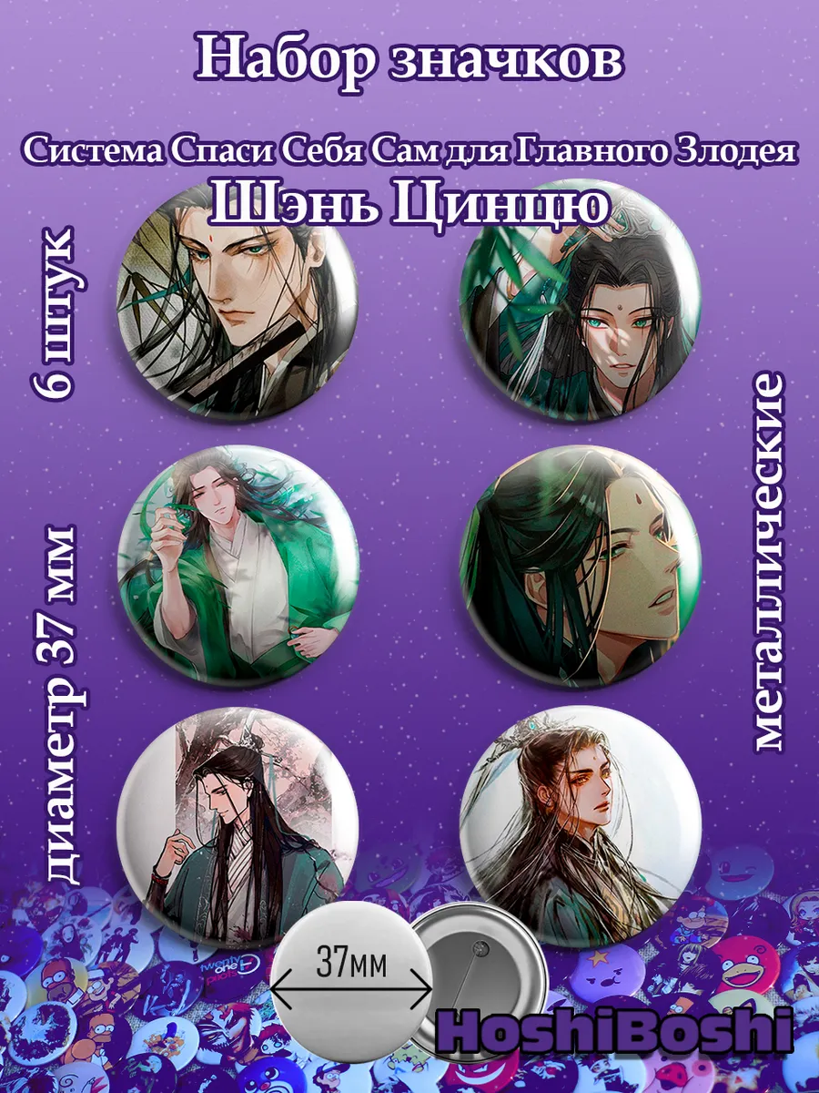 Набор из 6 металлических значков с изображениями из аниме Система спаси себя сам для главного злодея ( Chuan Shu Zijiu Zhinan ).