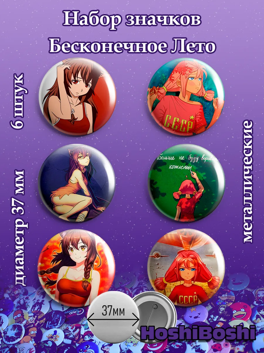 Набор из 6 металлических значков с изображениями из игры Бесконечное Лето ( Everlasting Summer ).