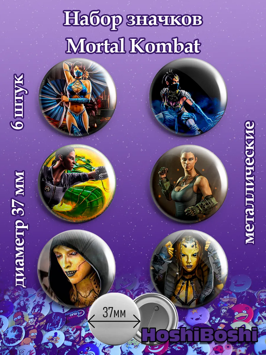 Набор из 6 металлических значков с изображениями из игры Мортал Комбат ( Mortal Kombat ).