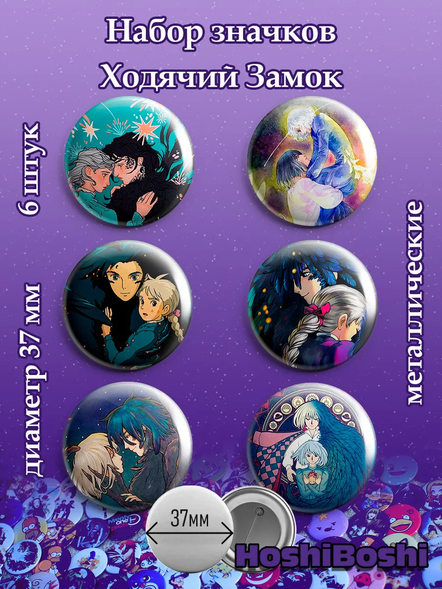 Набор из 6 металлических значков с изображениями вселенная Хаяо Миядзаки ( Hayao Miyazaki ).