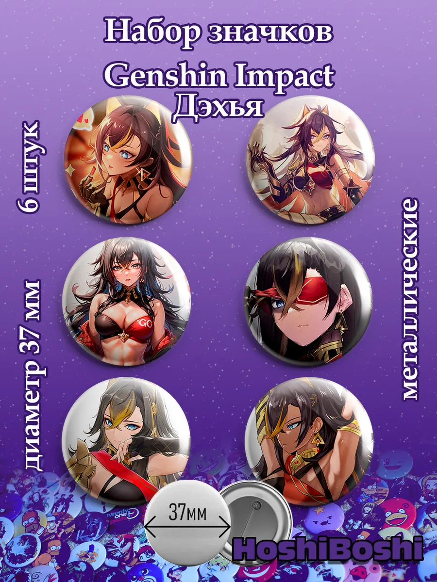 Набор из 6 металлических значков с изображениями из игры Геншин Импакт ( Genshin Impact ).