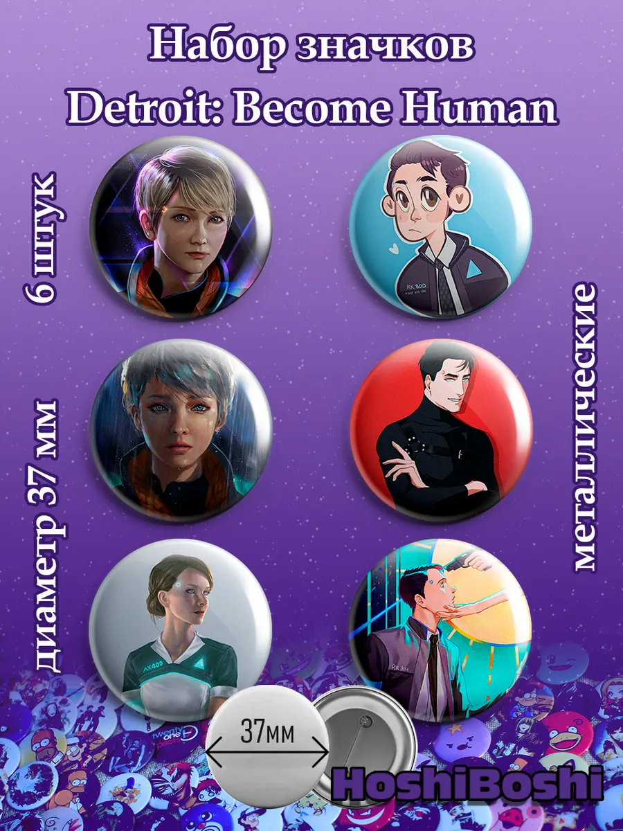 Набор из 6 металлических значков с изображениями из игры Детройт: Стать человеком ( Detroit: Become Human ).