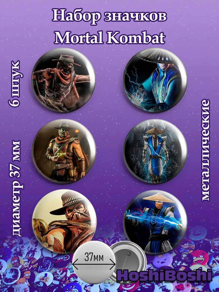 Набор из 6 металлических значков с изображениями из игры Мортал Комбат ( Mortal Kombat ).
