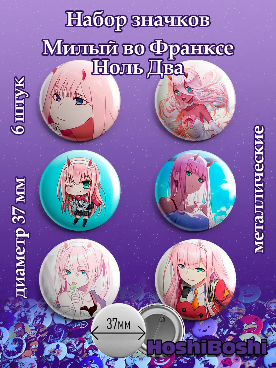 Набор из 6 металлических значков с изображениями из аниме Милый во Франксе ( Darling in the Franxx ).